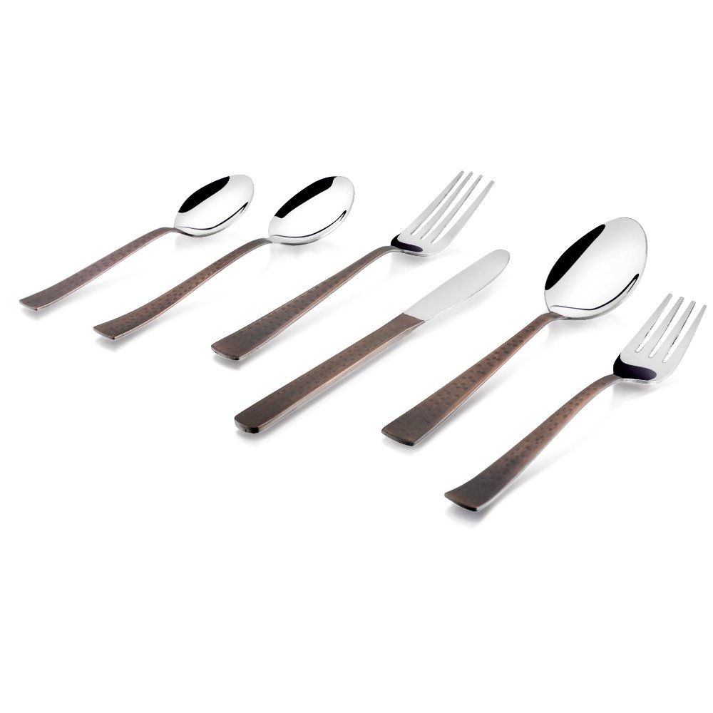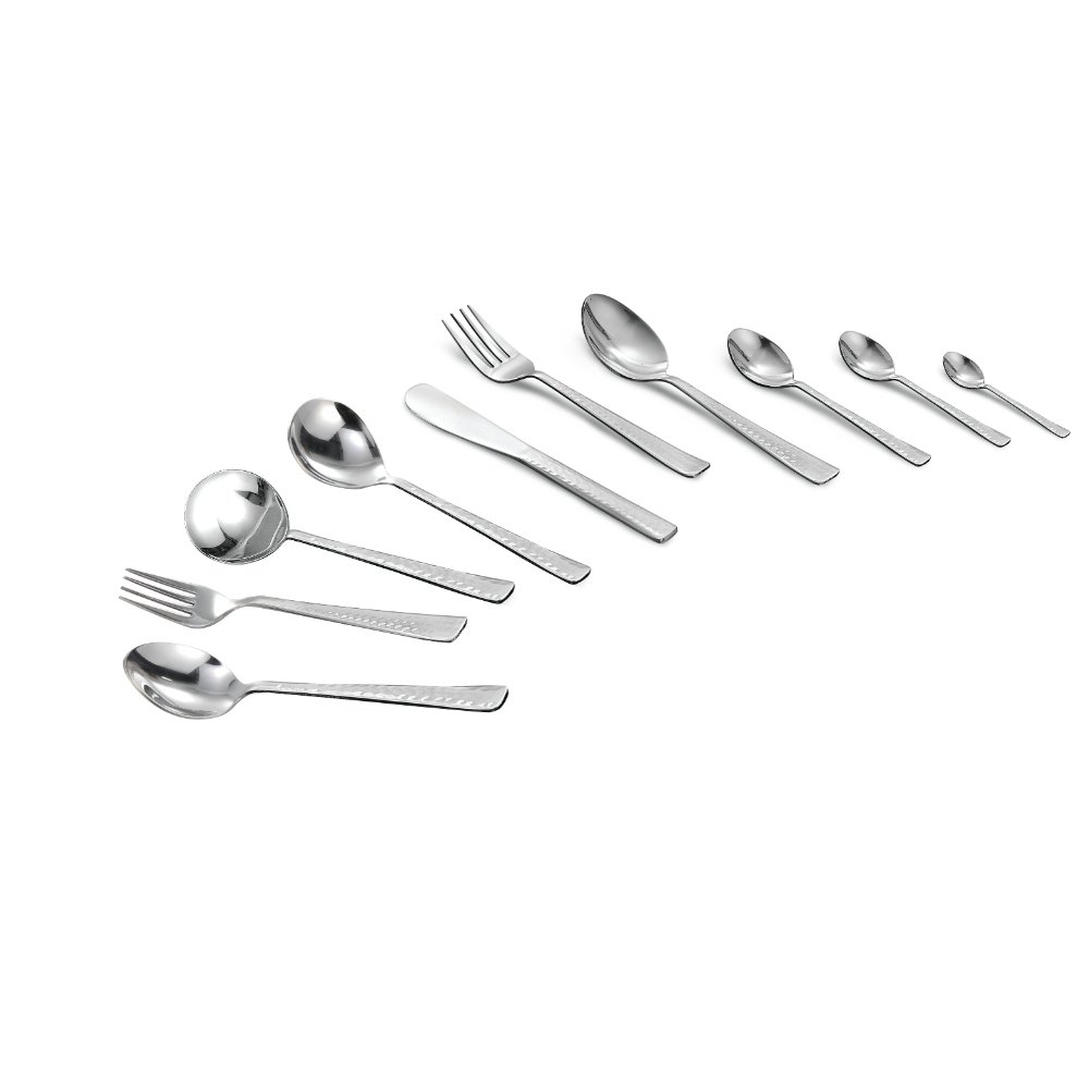 The Stainless Steel Cutlery Collection is crafted for durability, elegance, and versatility in hospitality service. Available in a variety of designs—Cutlery Impress 14G Hammer, Cutlery Impress 14G Matt, Cup Rolled 8G Mirror, Cup Rolled Gold PVD, Cup Rolled Rose Gold PVD, Cup Rolled Gunmetal PVD, and Cutlery Impress 14G Antique Copper—this range combines premium craftsmanship with practical utility. Built from high-quality stainless steel with hammered, matt, mirror, and PVD finishes, the collection includes coffee spoons, tea spoons, baby spoons, AP spoons, AP forks, AP knives, serving spoons, soup spoons, soda spoons, tablespoons, and table forks. Strong, reusable, and easy to maintain, these pieces are perfect for restaurants, hotels, catering, and banquets. From everyday dining to premium fine dining experiences, this cutlery enhances table presentation with sophistication and long-lasting performance.
