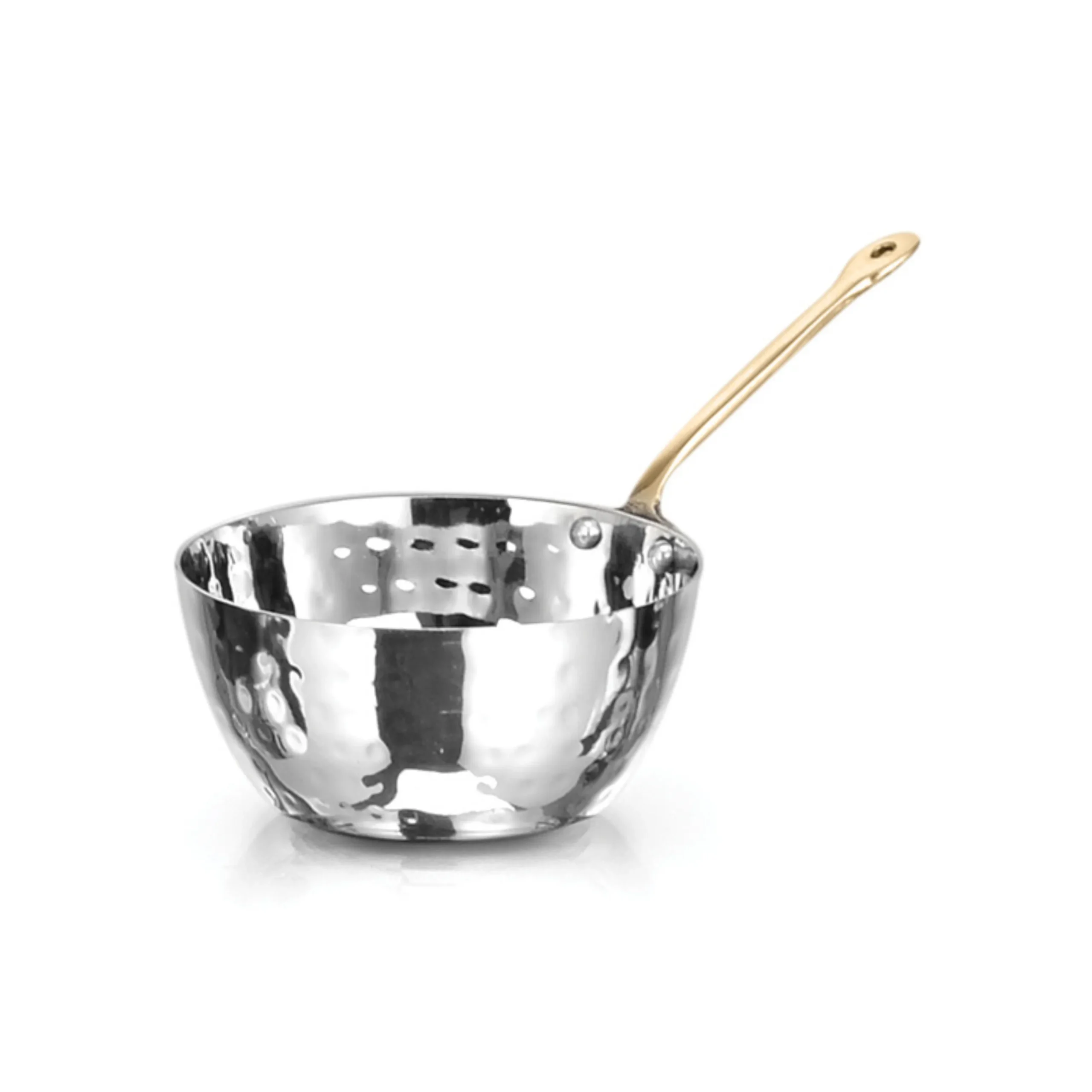 The Mini Serveware Collection is crafted from high-quality stainless steel with a hammered finish, designed for elegant food presentation in hotels, restaurants, catering, and banquets. Featuring mini handi pans, fry pans, sauce pans, bowl pans, four corner pans, belly pans, karahis, byte katoris, round chat bowls, rectangular chat bowls, oval platters, and rectangular platters, this collection is perfect for serving appetizers, sides, desserts, and tasting portions. Lightweight, durable, and reusable, each piece combines traditional design with modern aesthetics, making it ideal for enhancing buffet displays, fine dining, and festive occasions.