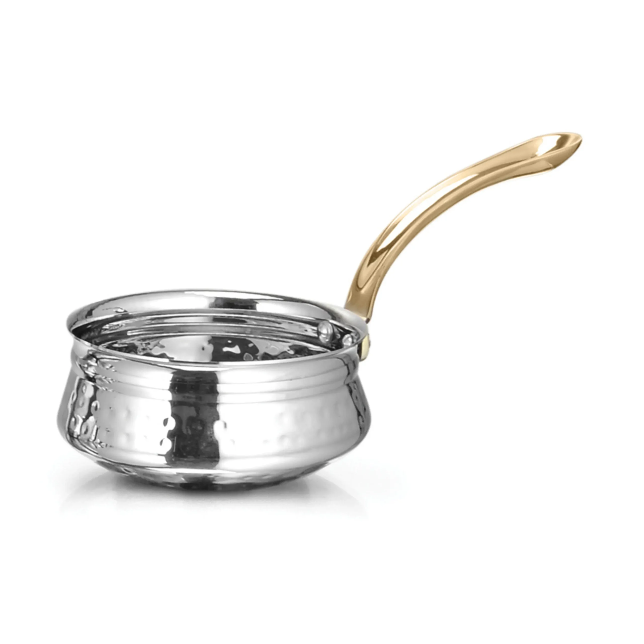 The Mini Serveware Collection is crafted from high-quality stainless steel with a hammered finish, designed for elegant food presentation in hotels, restaurants, catering, and banquets. Featuring mini handi pans, fry pans, sauce pans, bowl pans, four corner pans, belly pans, karahis, byte katoris, round chat bowls, rectangular chat bowls, oval platters, and rectangular platters, this collection is perfect for serving appetizers, sides, desserts, and tasting portions. Lightweight, durable, and reusable, each piece combines traditional design with modern aesthetics, making it ideal for enhancing buffet displays, fine dining, and festive occasions.