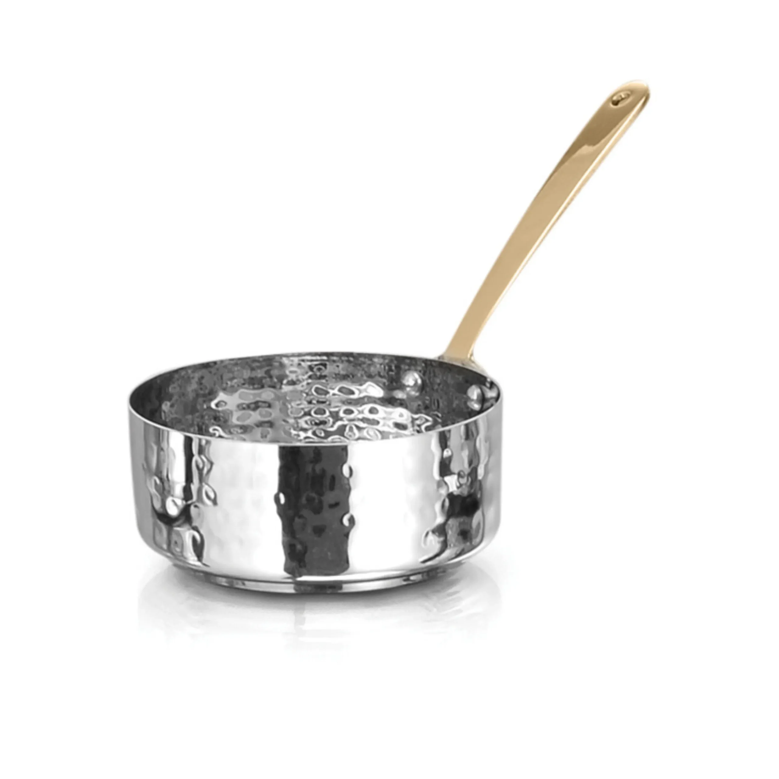 The Mini Serveware Collection is crafted from high-quality stainless steel with a hammered finish, designed for elegant food presentation in hotels, restaurants, catering, and banquets. Featuring mini handi pans, fry pans, sauce pans, bowl pans, four corner pans, belly pans, karahis, byte katoris, round chat bowls, rectangular chat bowls, oval platters, and rectangular platters, this collection is perfect for serving appetizers, sides, desserts, and tasting portions. Lightweight, durable, and reusable, each piece combines traditional design with modern aesthetics, making it ideal for enhancing buffet displays, fine dining, and festive occasions.