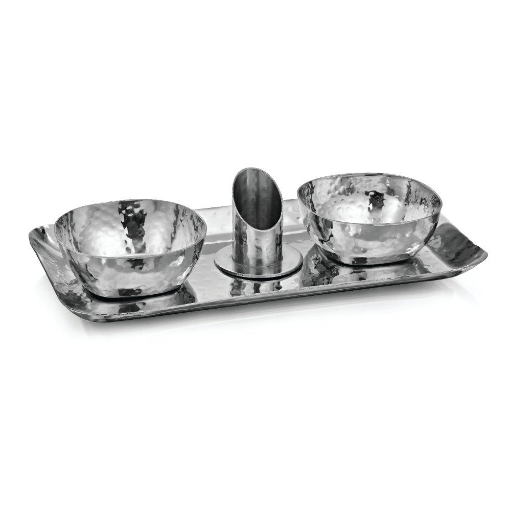 The Mukhwas Set is designed to add sophistication to post-meal dining rituals in restaurants, hotels, and banquets. Made from premium stainless steel with a hammered finish, this set ensures durability while maintaining a polished, luxurious look. Perfect for presenting mouth fresheners, saunf, or mukhwas in an organized and stylish way, it elevates the overall table experience for guests. Ideal for fine dining establishments, catering services, and homes that value tradition blended with modern elegance.