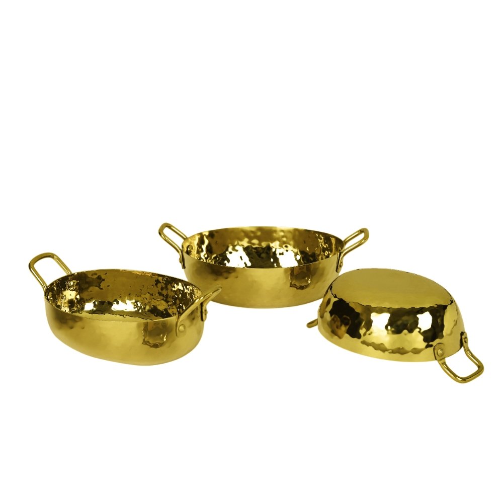 The Oval Boat Pan Collection with SS Handles is a versatile and premium serving solution, crafted from high-quality stainless steel with a hammered finish. Designed in an elegant boat shape, these pans bring a modern yet traditional charm to any table setup. Available in stunning finishes including Stainless Steel, Gold PVD, Rose Gold PVD, Gun Metal PVD, and Antique Copper, they combine durability with luxury, making them ideal for upscale restaurants, hotels, and catering events. Each pan features sturdy stainless steel handles for easy handling and is available in multiple sizes to serve a variety of dishes — from curries and gravies to appetizers and baked delicacies. The collection is not only food-safe and long-lasting but also adds sophistication to banquets, buffets, and fine dining experiences.