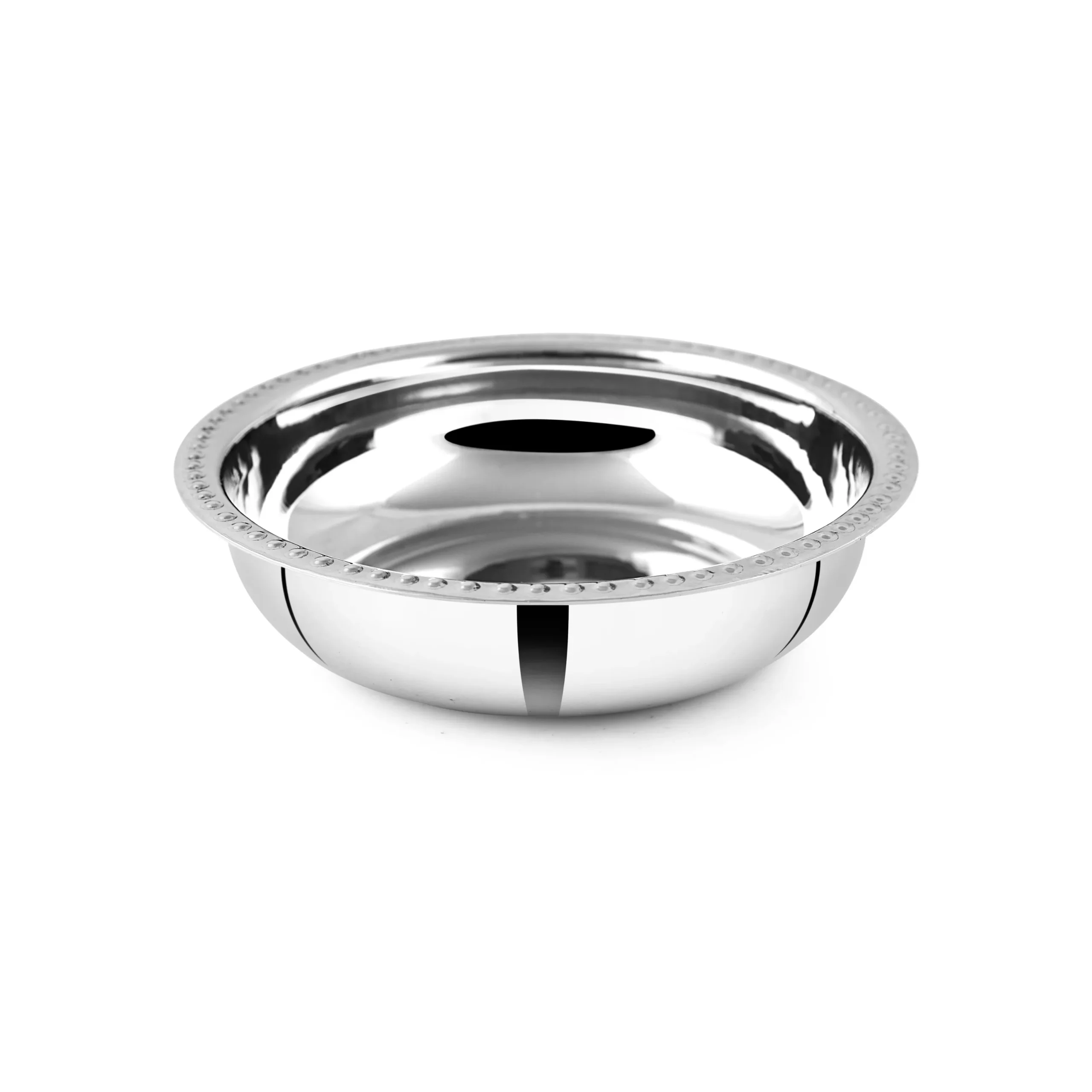 The Halwa Plate Collection is a premium range of stainless steel dessert plates designed with elegant hammered or mirror finishes. Built with single wall construction for durability, these plates are lightweight, reusable, and easy to maintain—perfect for restaurants, hotels, catering, and banquets. Available in multiple shapes including round beaded, round premium, octagonal, square, Rajwada, and Jewel designs, they are ideal for serving halwa, sweets, desserts, dry fruits, and side portions. Combining functionality with decorative appeal, the Halwa Plate Collection enhances food presentation in both traditional and modern dining setups.