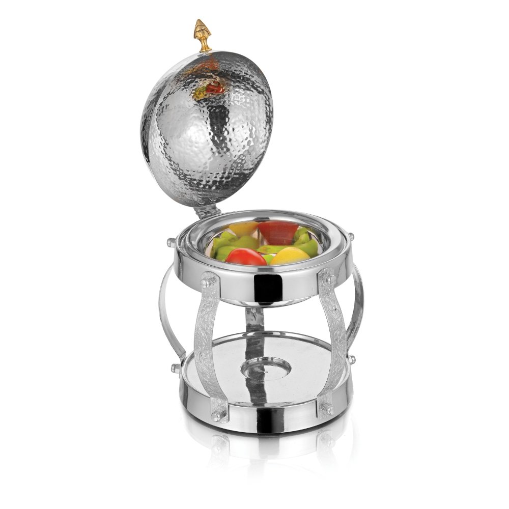 The hammered stainless steel Roll Top Set is a premium hospitality serveware piece designed for luxury buffets, banquets, and fine dining presentations. Featuring a hammered finish and a roll-top lid, it allows easy access while keeping food fresh, warm, and elegantly displayed. Handcrafted from high-quality stainless steel, it combines durability with timeless elegance, making it ideal for hotels, restaurants, and catering services. Available in multiple sizes, the Roll Top Set is perfect for serving gravies, curries, rice, desserts, or continental dishes. Its sturdy build, smooth mechanism, and aesthetic design ensure both practicality and sophistication, making it a must-have for professional hospitality setups.