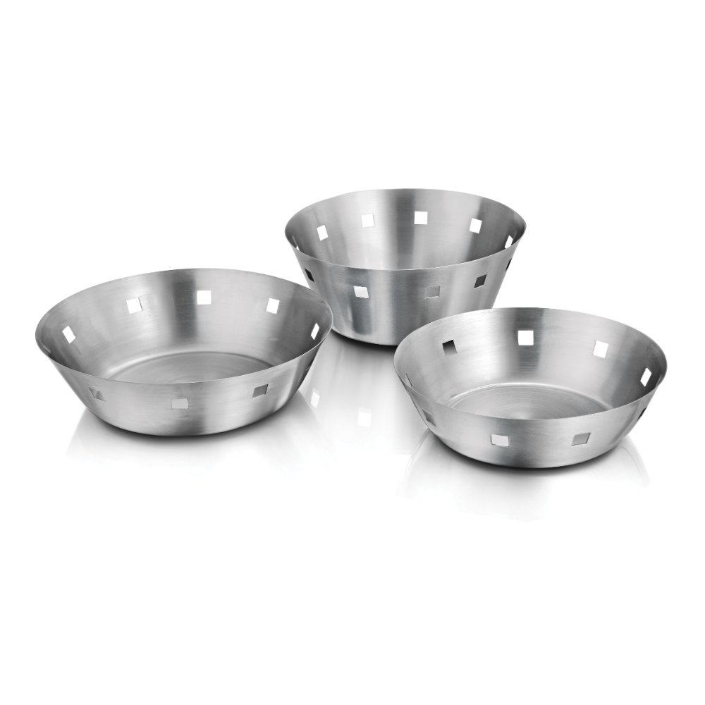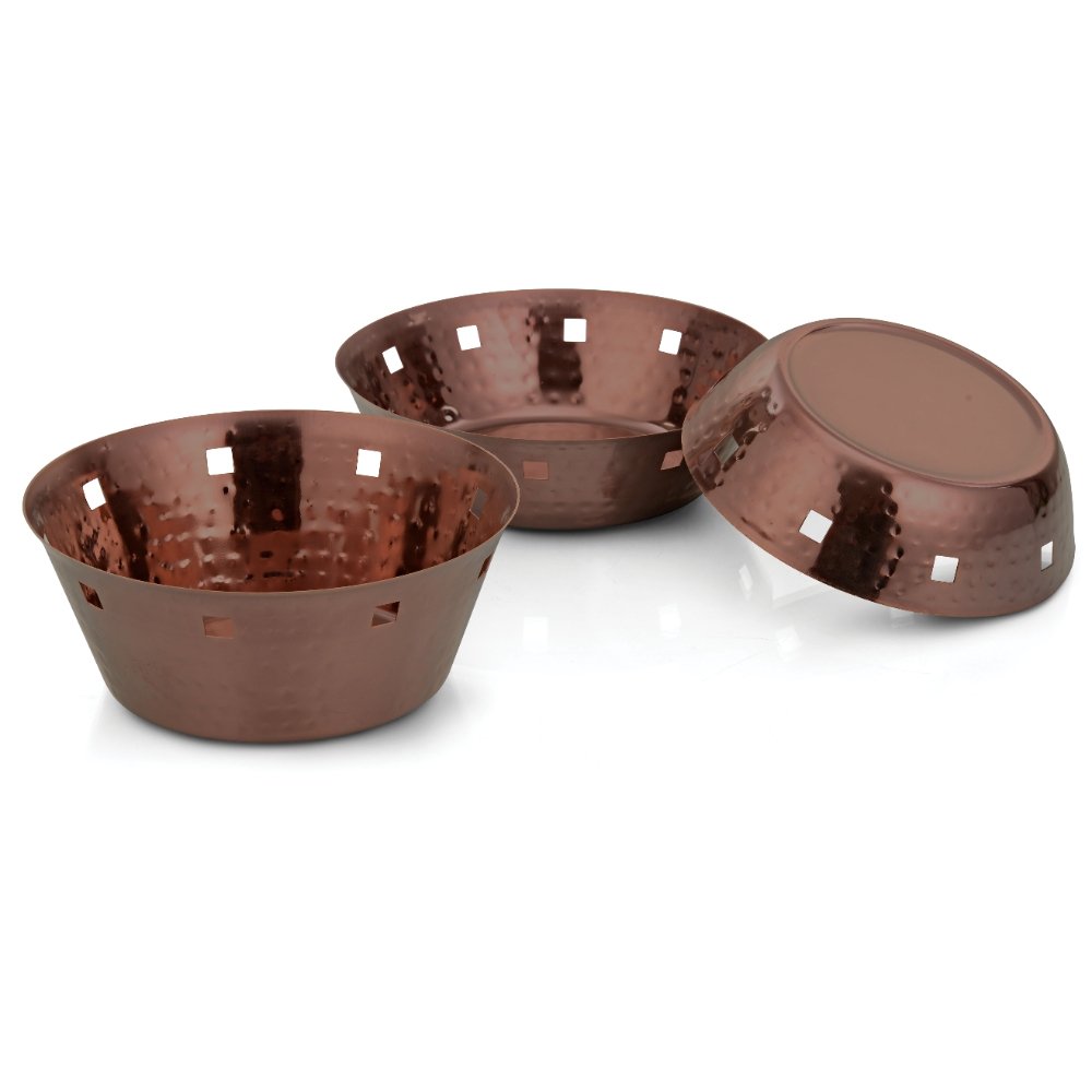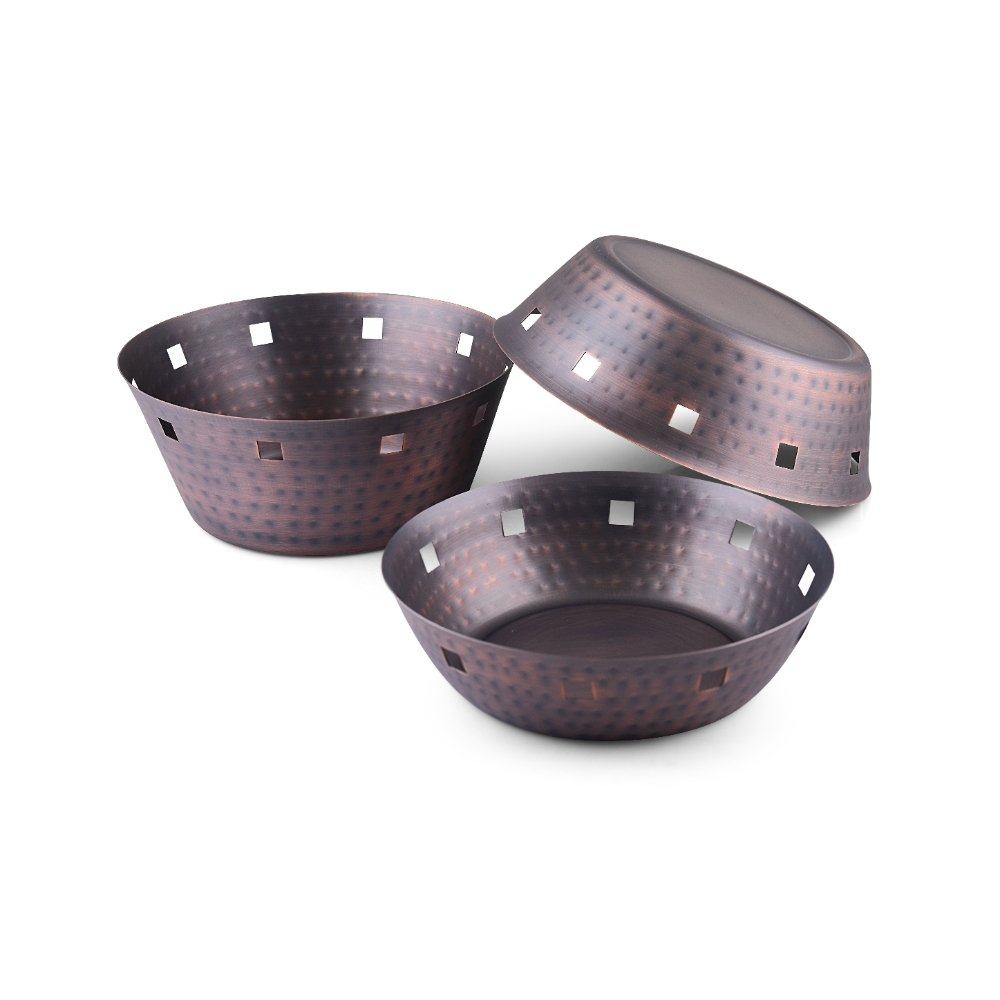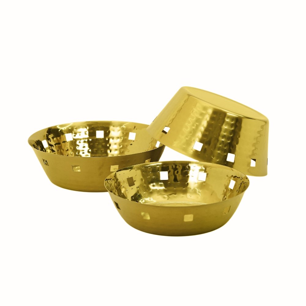 The Round Bread Basket with Square Hole design is a versatile and stylish addition to modern restaurants, hotels, buffets, and catering services. Crafted from premium stainless steel, these baskets are available in hammered, matt, PVD Gold, PVD Rose Gold, PVD Gun Metal, and Antique Copper finishes, offering durability with an elegant presentation. Their open square-hole pattern provides ventilation to keep bread, rolls, and snacks fresh while adding a touch of sophistication to the dining table. Available in multiple sizes, these baskets are ideal for serving bread, naan, pastries, and even fruits or side accompaniments. Designed for professional hospitality settings, they are easy to clean, long-lasting, and elevate the overall guest experience.