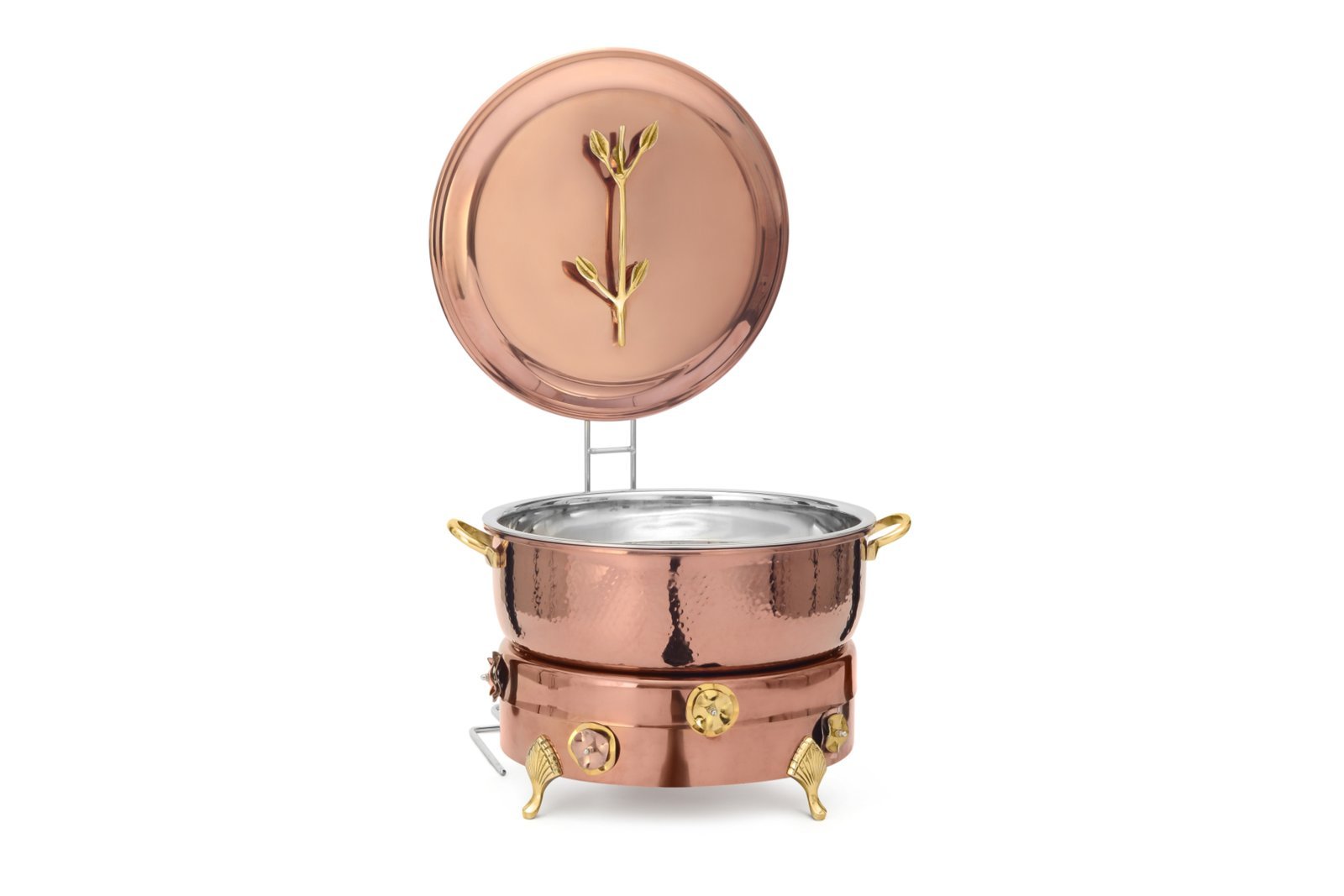The Round Dish Lift Top with High Dome Lid offers both style and functionality for large-volume food displays. Made from high-quality stainless steel with a polished mirror finish, its elevated dome lid allows generous space for serving dishes while retaining heat and freshness. Available in 5,000 ml and 7,000 ml capacities, it is perfect for banquets, catering events, and luxury dining buffets where presentation and practicality are equally important.