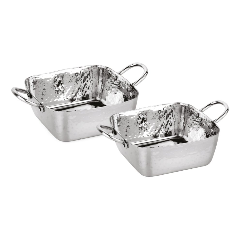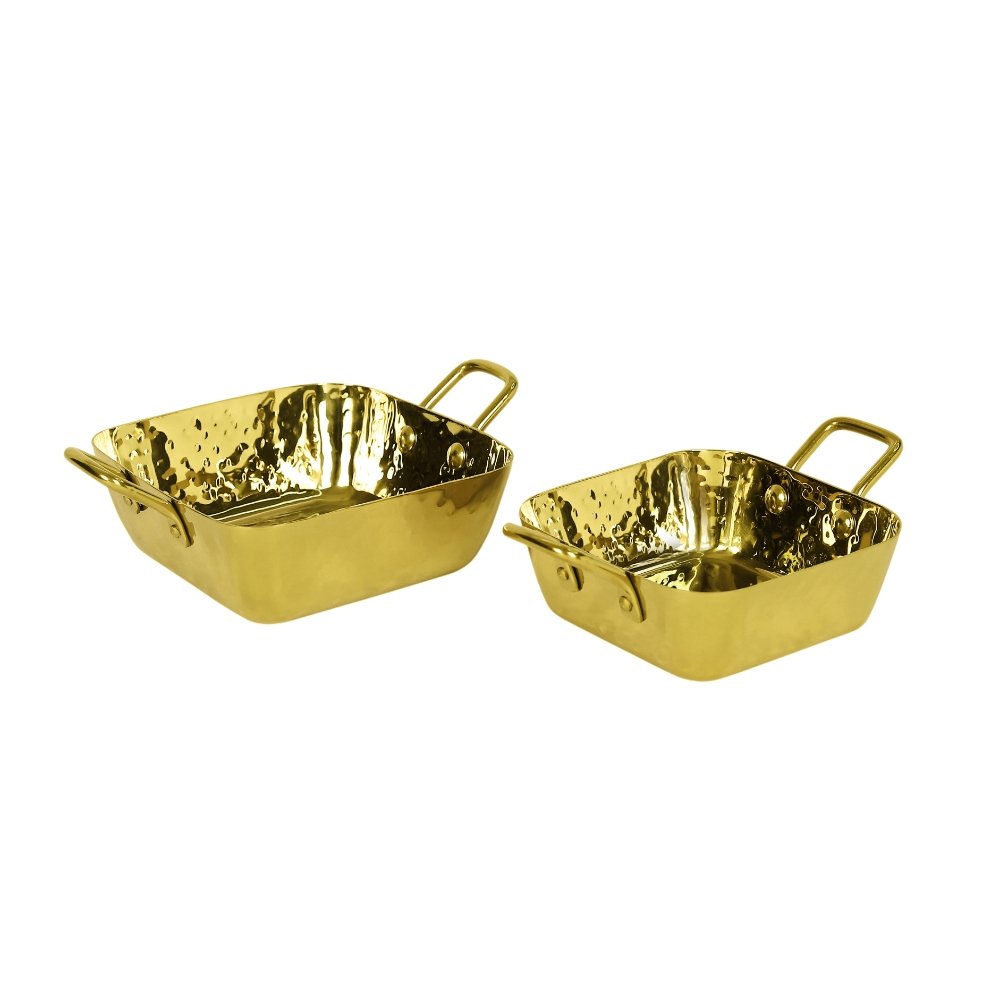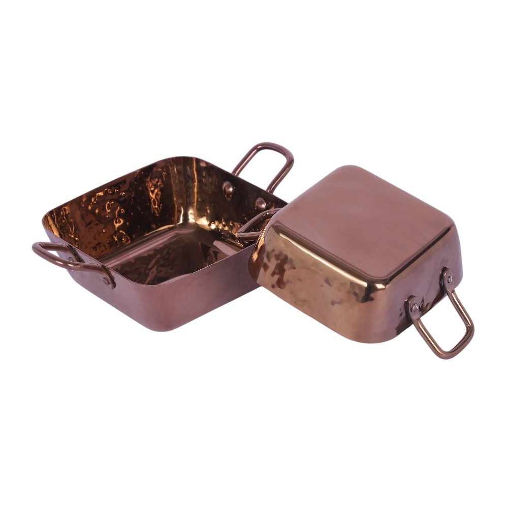 Elevate your table presentation with our Square Deep Pan Collection, crafted in premium hammered stainless steel with a modern deep-dish profile and sturdy side handles for easy serving. Available in multiple finishes — classic stainless steel, luxurious gold PVD, elegant rose gold PVD, bold gunmetal PVD, and rustic antique copper — these pans add both style and functionality to fine dining, banquets, and upscale restaurants. Their deep square design is ideal for serving gravies, curries, dals, or continental dishes while maintaining portion control and visual appeal. Durable, corrosion-resistant, and designed for long-lasting shine, these serveware pieces are perfect for hotels, restaurants, and catering businesses looking to impress their guests with sophistication at the table.