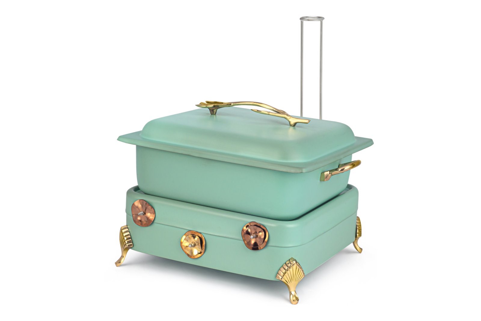 The Square Dish Lift Top with Flora Lid is crafted from premium stainless steel with a polished mirror finish, blending practicality with artistic elegance. Its unique floral lid design adds a decorative touch, while the smooth lift mechanism makes it easy to operate during buffet service. With a 7,000 ml capacity, it is perfect for hotels, banquets, and wedding catering setups, allowing chefs to present main courses or side dishes in style.