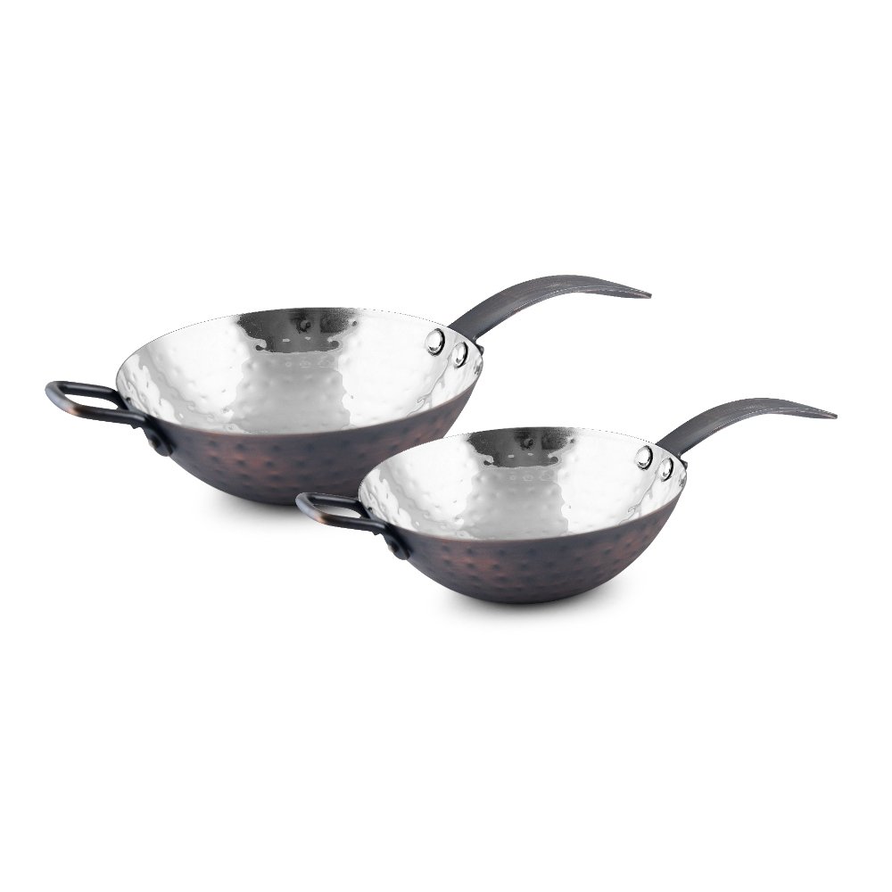 The Wok Pan – PVD and Electroplated Collection (Gold, Rose Gold, Gun Metal, Antique Copper) is a premium hammered stainless steel serving wok designed for luxury dining and professional hospitality. With its single-wall construction, hammered texture, and ergonomic long handle, this wok pan is both stylish and practical. The advanced PVD finishes—Gold and Rose Gold for opulent shine, Gun Metal for a modern industrial look, and electroplated Antique Copper for rustic elegance—make it perfect for upscale hotels, restaurants, buffets, and catering events. Ideal for serving stir-fries, curries, noodles, snacks, and appetizers, this wok pan combines artisanal craftsmanship with durability to enhance food presentation in fine dining and banquets.
